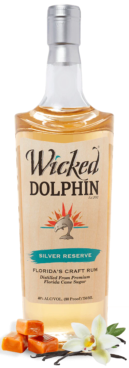 The Wicked Dolphin Silver Rum Reserve 750 ML is a premium Florida-crafted rum that combines purity, smoothness, and authentic small-batch tradition. Distilled from fresh Florida sugarcane, the Wicked Dolphin Silver Rum Reserve 750 ML opens with clean aromas of vanilla, sugarcane, and light tropical fruit. On the palate, the Wicked Dolphin Silver Rum Reserve 750 ML delivers a crisp, refreshing character with subtle sweetness, silky texture, and a long smooth finish. Perfect for mojitos, daiquiris, pina coladas, or enjoyed neat, the Wicked Dolphin Silver Rum Reserve 750 ML is versatile and refined.