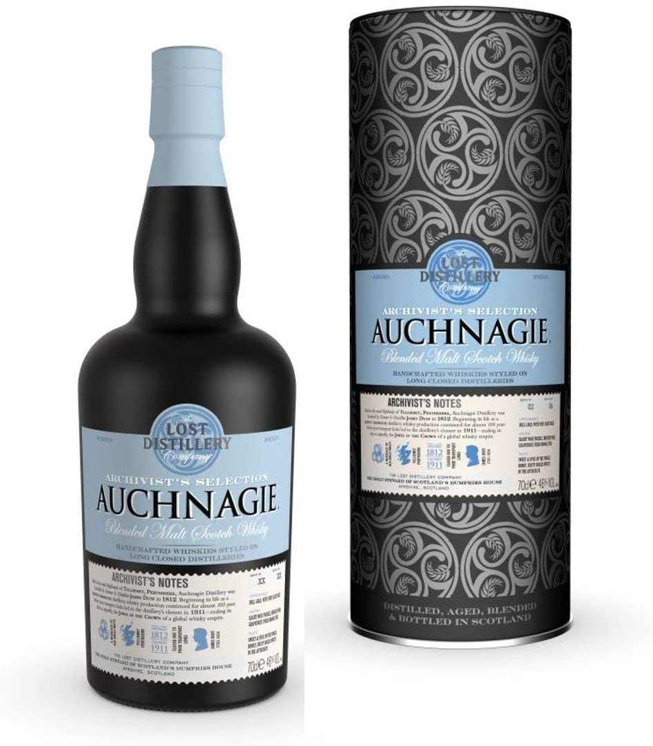 Auchnagie Archivist's : The Lost Distillery Company specialises in researching long-closed distilleries and using that research to create blended malt Scotch whiskies that they reckon could taste like what said closed distillery produced. This one was based on research into the Auchnagie distillery, which closed all the way back in 1911!