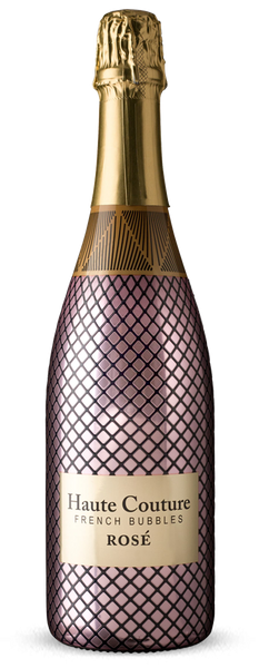Haute Couture French Bubbles Rose 750 ML bottle with elegant design, showcasing sophisticated, bubbly rose wine.