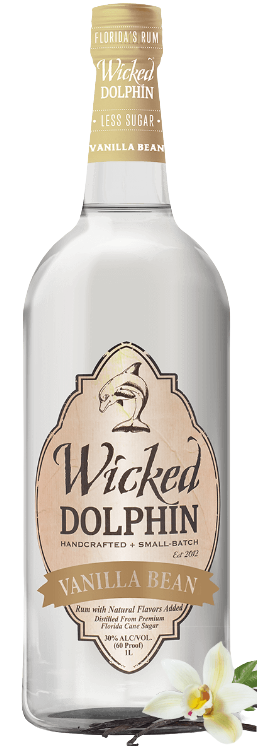 Wicked Dolphin Vanilla Rum 1L bottle with Madagascar vanilla bean aroma.