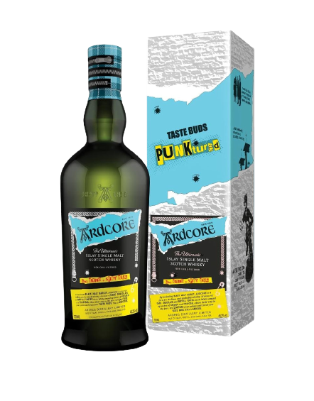 From Ardbeg, a with more ups and downs than a pogoing punk, comes Ardcore. Created with roasted black malt – an unconventional choice, and a first for Ardbeg – this spirit is all about what happens up front, centerstage. Incinerated to hair-raising levels, the malt is what defines its distinctive profile. Described by Dr. Bill Lumsden as tasting ‘like biting on a spiky ball’, this devilishly delicious dram is one for the ages. Notes of charcoal and sweet smoke make for an in-your-face nose, while potent notes of aniseed and dark chocolate stamp this bottle out as one fit only for the most Ardcore of fans.\n Non chill-filtered at 46% ABV.